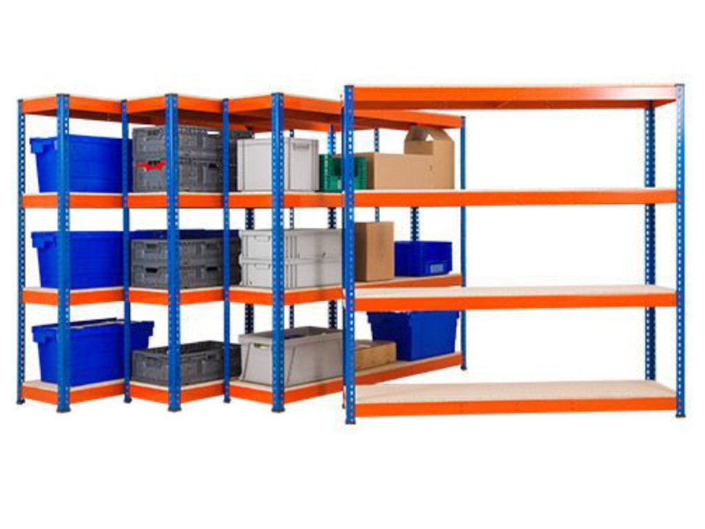 Regál 1800x1800x700 mm, PROFESIONÁLNY, lakovaný 4-policový, nosnosť 1600 kg - MODRO-ORANŽOVÝ